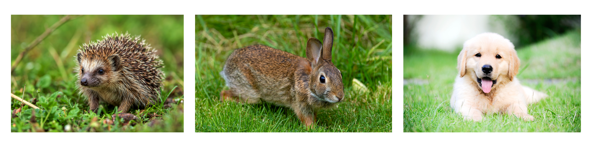 Photos include a hedgehog, a rabbit and a dog.